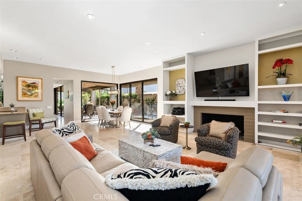 Welcome to your desert dream home in the heart of The Springs Country Club — where luxury, lifestyle, and location come together seamlessly. Perfectly positioned on the prestigious 3rd hole of the championship golf course, this beautifully maintained 3-bedroom, 3-bath residence offers nearly 2,700 square feet of thoughtfully designed living space. With its coveted south-facing orientation, the home captures breathtaking mountain views and abundant natural light throughout the day. A large, tranquil private front courtyard welcomes you with a serene Koi pond, creating an inviting outdoor retreat ideal for morning coffee or evening gatherings. Inside, neutral stone flooring flows through the main living areas, complemented by new contemporary low-pile carpeting in the bedrooms for a fresh, modern feel. Designed for effortless indoor-outdoor living, the spacious layout opens toward the golf course and mountain backdrop. The primary suite is a true sanctuary, featuring two generous walk-in closets and a well-appointed en-suite bath. The kitchen combines style and functionality with slab granite countertops, a gas range, and stainless steel appliances — perfect for both everyday living and entertaining. Additional highlights include a two-car garage plus a dedicated golf cart garage, both finished with durable epoxy flooring. Ideally located directly across from Eisenhower Medical Center and just minutes from shopping, dining, and entertainment at The River at Rancho Mirage and El Paseo, this home offers both privacy and convenience. Residents of The Springs Country Club enjoy a vibrant social scene, premier tennis and pickleball facilities, and a recently updated championship golf course — all within a secure, beautifully maintained community.