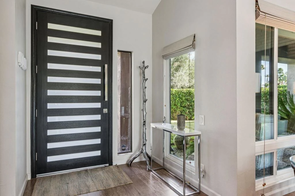 MOTIVATED SELLER INVITES YOU to experience an environment where every day feels extraordinary in this classic contemporary Rancho Mirage home. Be inspired by the dramatic living area with soaring ceilings, natural gas fireplace, and a stunning block-stone chimney--resulting in an atmosphere of limitless possibility. Recent renovations include luxurious porcelain tile throughout the entire home, all new double-pane windows and sliding doors, updated kitchen, bathrooms and more. Imagine hosting joyful celebrations in the spacious dining area, where laughter and good company fill the air. Entertain with confidence in your stylish family/TV room, complete with a sleek cocktail/wine bar--ready for unforgettable evenings. The chef's kitchen, a vision in white quartz, is more than a place to cook; it's a launchpad for creativity, connection, and culinary adventure, featuring top-tier appliances for every ambition. Embrace indoor-outdoor living as you open the doors to a generous covered loggia--perfect for movie nights, al fresco dining, or simply soaking in the serene desert air. Recharge in your private backyard oasis boasting a sparkling pool with soothing raised spa framed with magical starlit evenings by the fire pit, all of which awaits your next moment of inspiration. Let your passions thrive in the versatile 'Hoby Hut'--ideal for yoga, art, and personal growth. At day's end, retreat to the primary suite, where direct patio access and a spa-like bathroom offer relaxation and renewal. Two more bedrooms and a second updated bathroom provide comfort for loved ones and guests. With energy-efficient windows, water-saving synthetic turf, and a powerful 48-panel solar system, your future here is as sustainable as it is bright. Make every day motivating in this ideally situated, wind-protected area of Rancho Mirage's desirable 'Tamarisk Heights' hamlet which is known for well-maintained mid-century and custom homes featuring private pools, mature landscaping, and mountain views. Even though the community offers a quintessential, relaxed desert experience in a prime central location, the cherry on top with this home is the fee-simple (owned) land, and a secluded corner lot with no HOA.