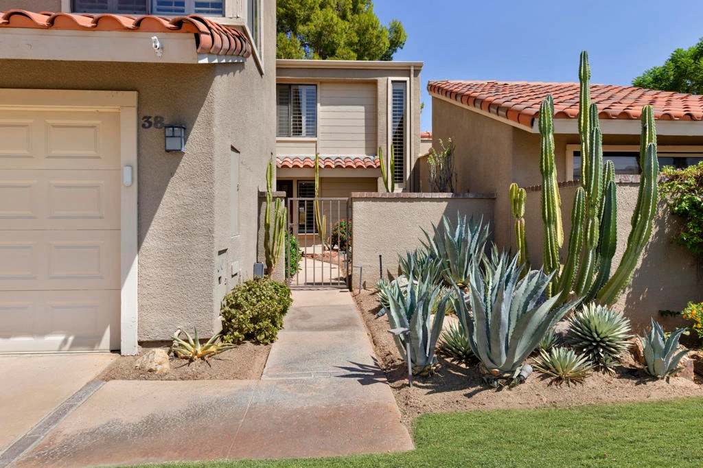 Experience desert living at its best at 38 Tennis Club Drive, in the sought-after Rancho Mirage Racquet Club. Featuring the community's largest floorplan, boasting over 2,300 square feet, this rarely available, beautifully updated home offers three bedrooms and three full bathrooms, including two huge en-suites and a third bedroom with full bath downstairs. Throughout, enjoy serene views of the lake, waterfall, and surrounding mountains. Inside, soaring ceilings, fresh paint, and new flooring create a bright, inviting atmosphere. The living room boasts a gorgeous, tiled fireplace and stunning lake and waterfall views, while the modern kitchen offers stainless steel appliances, granite countertops, and a sunny breakfast room. Adjacent to the dining area, a wet bar with sink and cabinetry makes entertaining effortless. Panoramic mountain vistas can be seen from the front of the home and one of the two oversized en-suite bedrooms, while multiple patios provide ideal spots for relaxing or dining al fresco. An abundance of closet space is a welcome feature. A newer HVAC system ensures comfort year-round, and a private two-car garage plus driveway parking add convenience and security. Residents of this gated enclave of just 95 homes enjoy five pools, five spas, tennis and pickleball courts, a fitness center, clubhouse, putting green, and beautifully landscaped lakes, waterfalls, and streams. Perfectly situated near shopping, dining, golf, and hiking, this home is ideal as a full-time residence, vacation retreat, or investment opportunity. Schedule your private tour today and discover the exceptional lifestyle at 38 Tennis Club Drive!