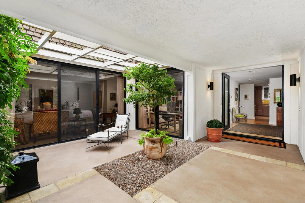 Incredible privacy and panoramic mountain views define this updated desert retreat, ideally located within the Springs Country Club. This walled and gated 3-bedroom, 3-bath Pinehurst model offers refined indoor-outdoor living with a private pool and spa.The open-concept living and dining areas feature 10-foot ceilings and abundant natural light. A fireplace and built-in bar provide functional focal points for entertaining or relaxed everyday living. Clean lines and thoughtful design create a calm, sophisticated atmosphere.The kitchen features quartz countertops, custom cabinetry, Sub-Zero refrigeration, a built-in wine refrigerator, and a spacious pantry. A light-filled breakfast room opens to the backyard, where mountain views frame the Pebble Tec pool.The primary suite offers a walk-in closet and a spa-style bath with modern finishes and a freestanding soaking tub. A second primary ensuite enjoys access to a private front courtyard. A third ensuite bedroom, currently serving as a den, provides flexible living options to suit your lifestyle.Recent upgrades include updated pool tile and Pebble Tec, a variable-speed pool pump, two new 50-gallon water heaters, a Moen Flow smart water monitor and shutoff, new laundry equipment, and 31 owned solar panels for impressive energy savings.Residents of The Springs enjoy gated security, social club membership with fitness, tennis, pickleball, and bocce, cable and internet, exterior maintenance including roof and paint, and exterior landscaping beyond the courtyard walls.No open houses will be scheduled. Please call for appointment.