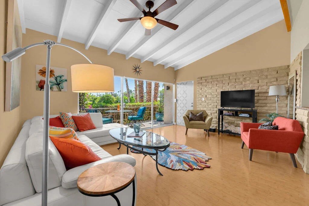 Imagine living in a Lovely low maintenance mid century desert lifestyle flat, with gorgeous views and sunsets, generous amenities included in HOA, a friendly and social seasonal community-on a 12.25 acre private spacious, landscaped haven! Welcome to Desert Braemar! It's easy to Love!A 55+ , cash only purchase, and is a CoOp! Come see for yourself!Amenities include: Pool/Spa, Gym,Pickleball/Tennis,Fenced in Dog Park, beautiful Garden/Community event room with full kitchen, Patio with grills, wood shop, lawn bowling and putting green,1x assigned carport parking and plenty of guest parking, extra storage (carport locker and in a secured community covered storage room).Walkable corridor location to local coffee shops, eateries (Willies, Palm Cafe, and more),and shopping, hiking trails and greenbelt trail.HOA includes: Property Tax, Water, Spectrum Premium Cable and Internet , exteriors and grounds and community space maintenance.The listing agent can fill you in on all the details for buying in Desert Braemar!