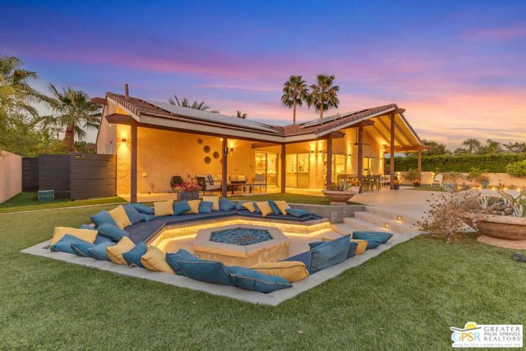 Desert Paradise with Luxury & Views! Welcome to your private oasis in the heart of Rancho Mirage! This fully remodeled 2-bedroom, 2-bath retreat sits on an expansive 18,000+ sq. ft. finished lot, offering an unparalleled blend of luxury, tranquility, and breathtaking mountain views. Step into an entertainer's dream with a south-facing resort-style pool and spa, complemented by a sunken fire pit perfect for unforgettable desert evenings. The lush lawn, mature landscaping, and bocce ball court create an idyllic outdoor escape, while the lava rock outdoor shower built for two delivers a spa-like experience under the open sky. Inside, the home is offered turnkey furnished (excluding artwork), showcasing a sophisticated yet relaxed aesthetic with high-end finishes throughout and an owned solar system. Nestled in a hidden enclave of estate homes, this property offers rare privacy and exclusivity yet is just minutes from world-class dining, golf, and shopping. A rare gem in Rancho Mirage, schedule your private showing today!