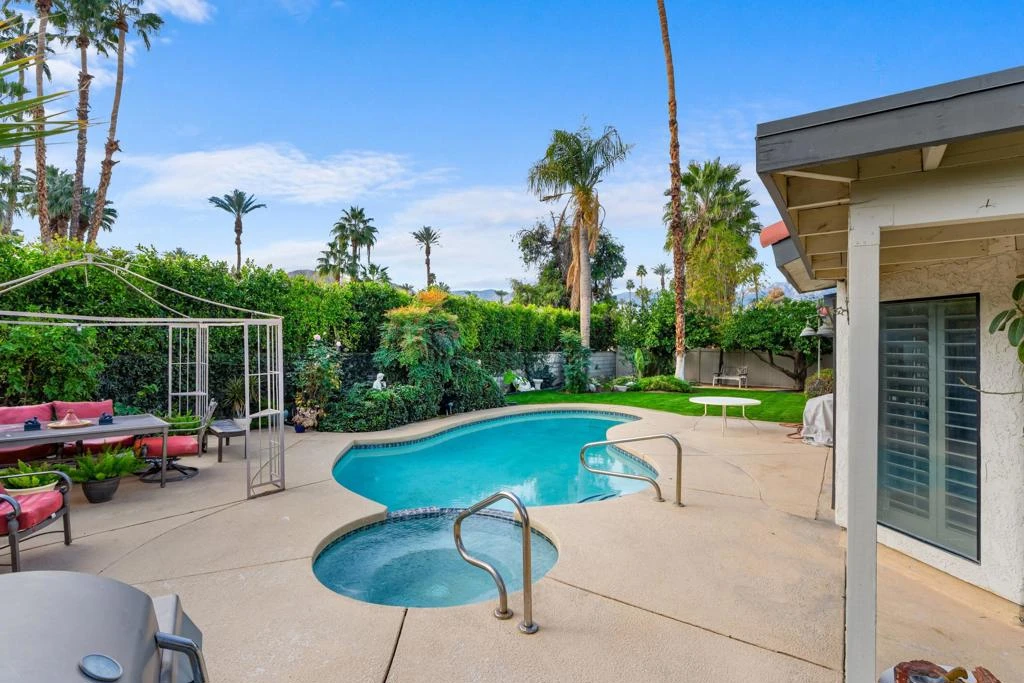 Set within the sought after enclave of Tamarisk, this inviting residence offers the rare combination of privacy, space, and enduring desert appeal, without HOA fees and on fee simple land with owned solar. Ideally located just north of the historic Tamarisk Country Club, Tamarisk is prized for its low-density setting, central convenience, and timeless character. A gracious interior unfolds beneath high ceilings, enhanced by ceiling fans and custom shutters that filter the desert light with ease. The well-proportioned floor plan offers three comfortable bedrooms and flexible living spaces designed for both relaxed daily living and effortless entertaining. Outdoors, a private backyard retreat captures a coveted southern exposure, with mature citrus trees, mountain views, and a sparkling pool and spa creating an ideal setting for year round enjoyment. Whether hosting under the palms or unwinding poolside, the outdoor space reflects the quintessential Rancho Mirage lifestyle. Located moments from golf, dining, shopping, and cultural amenities, this property presents an exceptional opportunity to enjoy the charm and livability of Tamarisk, one of Rancho Mirage's most established and desirable residential neighborhoods.