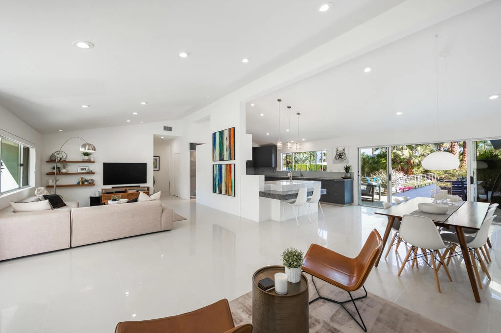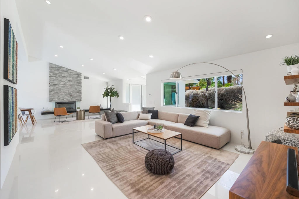 Experience exceptional desert living in this stunning Magnesia Falls Cove retreat. Nestled on over 1/3 of an acre behind private gates, this 3,315 SQ FT Rancho Mirage home offers unmatched privacy and panoramic mountain views. Featuring 3 bedrooms plus a versatile office/den that could easily convert into a 4th bedroom, along with 3.5 bathrooms, the flexible floor plan is ideal for modern living. Enjoy sleek contemporary finishes throughout--quartzite countertops, stainless steel appliances, spa-inspired bathrooms, double-pane windows, and a floating fireplace. The open-concept design is perfect for entertaining indoors and out. Step into your own resort oasis with a sparkling pool and spa, multiple lounging areas, fire pit, built-in BBQ with sink, outdoor shower, and breathtaking desert scenery. Upgrades include owned solar, updated HVAC, tankless water heater, and a whole-house water filtration & softener system. Located in one of Rancho Mirage's most coveted neighborhoods, this home is the perfect blend of style, comfort, and serenity. A rare opportunity you don't want to miss!