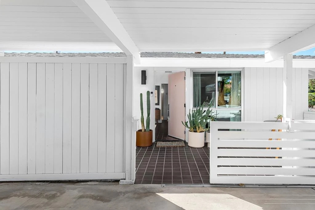 Nestled against the stunning backdrop of the Santa Rosa Mountains, this 1958 mid-century modern bungalow, designed by renowned architect Richard Leitch, AIA, is a masterful expression of desert modernism, where timeless design meets effortless sophistication.Distinguished by its iconic vaulted ceilings and refined, minimalist lines, this residence captures the essence of mid-century architecture while embracing the serene, sun-drenched lifestyle of the California desert. The interiors are a study in restrained elegance: a double-sided fireplace anchors the expansive great room and adjoining lounge, while two generously scaled bedrooms and two carefully appointed bathrooms offer comfort without compromising architectural purity. Walls of glass usher in natural light, amplifying the home's volume and forging a seamless dialogue between interior and exterior spaces.The outdoor environment is an entertainer's dream. A shimmering pool invites leisurely afternoons, while a vintage Malm fireplace beneath a shaded patio creates a striking focal point for evening gatherings. Whether hosting guests or savoring quiet sunset moments, the outdoor space is both visually captivating and supremely livable. With private outdoor space and mountain views, the property provides a perfect blend of relaxation and inspiration.A detached, thoughtfully designed office provides a secluded retreat for creative endeavors or remote work, blending utility with style in perfect measure. Located just around the corner from ''The River,'' a vibrant lifestyle center with shopping and a movie theater, the property offers convenience that complements its serene setting. Plus, it's just minutes from the upscale shopping and fine dining of El Paseo, offering a rare combination of privacy, elegance, and convenience.This architectural gem is more than a home, it is a living piece of design history. An extraordinary opportunity for the discerning collector of architecture and those who value design, authenticity, and the enduring charm of desert living. (Tierra Del Sol Property Association Fees are just $90 monthly and include a community pool.)