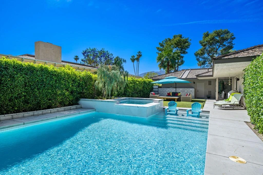 Welcome to 78 Columbia, a stunningly reimagined Pebble Beach floor plan nestled within the prestigious Springs Country Club, where luxury living meets resort-style amenities. This rare offering perfectly blends indoor elegance with exceptional outdoor living.Recent system upgrades (2025) provide peace of mind, comfort, and efficiency, including: HVAC Zone 1 new, two new furnaces, and two brand-new tankless water heaters.Enjoy effortless entertaining with expansive patio spaces, a private saltwater pool and spa, and breathtaking golf course views. The spacious lot offers a unique configuration with a private pool thoughtfully positioned to the side within a beautifully landscaped courtyard, creating a serene and secluded retreat.Inside, sophistication meets comfort. The living area features newly installed window treatments and a 60'' linear gas fireplace, and stunning vistas of the fairways. Two of the four bedrooms are currently utilized as private offices, offering flexible living options. From the sleek 12''x60'' porcelain tile flooring to the new recessed lighting every detail has been thoughtfully curated from floor to ceiling. The kitchen has been completely reimagined with a waterfall-edge breakfast bar, modern cabinetry, and newer appliances. The former dining room now serves as a flexible bonus space, perfect for a cozy den, reading nook, or lounge. Each of the four bathrooms has been fully remodeled, featuring floating vanities and sleek, linear finishes that elevate the home's contemporary design.Sustainability meets style with owned solar panels, enhancing energy efficiency without compromising comfort.Located just steps from the community's amenities which include pickleball and tennis courts, a fitness center, clubhouse, and cafe. 78 Columbia isn't just a home, it's a lifestyle.