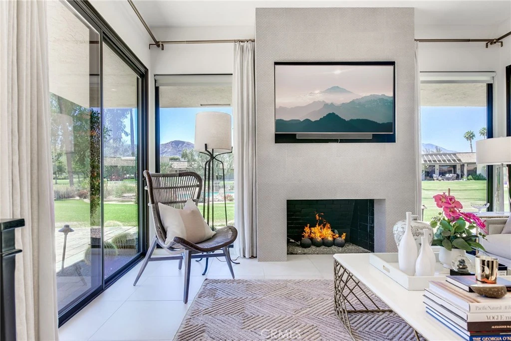 Welcome to your dream home in the heart of Rancho Mirage, nestled within the prestigious guard-gated community of The Springs. This beautifully reimagined 2-bedroom, 2-bathroom Augusta floorplan with an office/3rd bedroom has been completely remodeled from top to bottom, blending luxury, comfort, and modern elegance. Step inside to discover an expansive open-concept layout featuring a designer kitchen with an oversized quartz island, abundant custom cabinetry, and top-tier finishes—perfect for entertaining and everyday living. The living and dining areas flow seamlessly from the stunning kitchen island, creating a bright, inviting space with floor to ceiling windows filled with natural light and stunning mountain and golf course views. The spacious primary suite is a true serene and spacious retreat along with a spa-inspired bathroom featuring high-end finishes and a relaxed ambiance. The fully updated laundry room adds functionality and style, while the oversized two-car garage includes ample storage and space for a golf cart. Located directly on the golf course and just steps from one of the 46 community pools, this home offers the best of indoor-outdoor desert living on the newly redone wrap around patio. Additionally, this home is highly energy efficient from the HVAC system, the solar panels, high efficiency appliances and dual pane windows. The Springs is known for its exceptional amenities, including a state-of-the-art fitness and spa center, tennis and pickleball courts, a vibrant clubhouse, and year-round social events. Exterior maintenance is included, allowing for a low-maintenance lifestyle. With the golf course currently undergoing a full renovation, The Springs is soon to be home to the newest and most exciting course in Rancho Mirage. Don’t miss your opportunity to own a piece of paradise in this coveted desert oasis.
