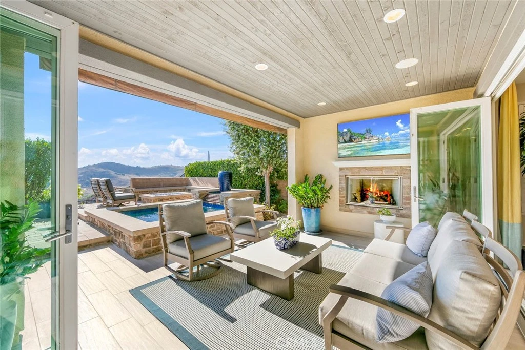Welcome to one of Rancho Mission Viejo’s most remarkable view homes! An architectural masterpiece in the exclusive Ventana enclave in the award-winning community in Rancho Mission Viejo. This residence is designed for both grand entertaining and everyday luxury. The backyard is a private retreat featuring a custom-designed jacuzzi with a rare standing zone for a full-body hydro massage, a tranquil waterfall feature, gas fire pit, built-in BBQ with full appliances, and generous gathering space. All set against sweeping views and refreshing ocean breezes. The great room impresses with a 16-foot sliding glass door that seamlessly connects to the covered California Room, complete with fireplace, designer ceiling paneling, and a motorized retractable awning extending 16 feet for instant shade at the touch of a button. Inside, the kitchen is a chef’s dream, a built-in refrigerator, wine refrigerator, abundant cabinetry, and an oversized island invite both creativity and connection. The main level includes a full bedroom and bath, while upstairs offers a spacious loft and three additional bedrooms. The primary suite is a true sanctuary with panoramic views and a private balcony adorned with custom ceiling paneling. Additional premier features include epoxy-coated garage flooring with built-in cabinets, plantation shutters, custom closets, surround sound, and thoughtfully designed built-ins throughout. This home delivers the perfect balance of architectural design, modern comfort, and resort-style living, a rare find in one of Rancho Mission Viejo’s most coveted enclaves. Exclusive to Rancho Mission Viejo residents are all amenities in the Villages of Sendero, Esencia, Rienda and future Villages. There are community amenities for all from breath-taking resort-style pools and spas, Esencia school K-8, community farms, fitness centers, guest house, putting green, bocce ball courts, tennis and pickle ball courts, playgrounds, coffee shop, fire pits, an arcade and so much more!