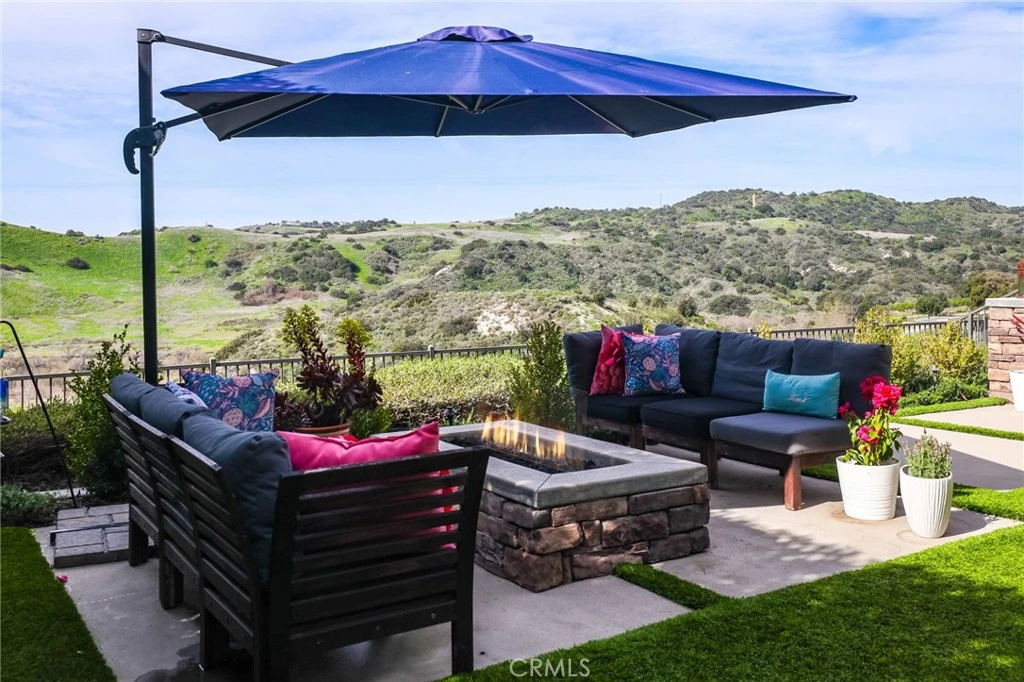 THE BEST VIEW AND BEST VALUE FOR A VIEW HOME WITH POOL SIZE YARD WITH POOL DESIGN RENDERINGS IN RANCHO MISSION VIEJO. Set high above the Ventana enclave in Esencia, this masterfully upgraded residence—complete with fully paid solar—captures sweeping, unobstructed hill and city-light views that elevate everyday living. Designed with intention and finished to the highest standards, this turnkey home offers four bedrooms, a generous bonus room with the flexibility to become a fifth bedroom, and four-and-a-half impeccably appointed baths. Wood-look plank flooring flows throughout the main level, leading into an expansive open-concept living space ideal for both everyday living and elevated entertaining. The kitchen blends style and functionality with a dramatic quartz island, custom pendant lighting, stainless steel appliances, and designer tile accents that add depth and character. The adjacent family room is anchored by a contemporary fireplace, while the dining area provides flexible space for gatherings and entertaining. Seamless indoor-outdoor living defines the home. The signature California Room with its stacked-stone fireplace invites year-round enjoyment, while the private backyard offers a rare pool-size yard with breathtaking views, thoughtfully finished with a built-in BBQ, firepit, low-maintenance turf, and generous space to relax or entertain under the open sky. Adding tremendous future value, the seller has already completed and paid for architectural design and installation plans for a custom pool and expanded outdoor living area, allowing the next owner to easily bring a resort-style backyard vision to life. Additional renderings are available. A main-level guest suite offers privacy and convenience, while upstairs features spacious secondary bedrooms, beautifully maintained baths, and a large bonus room adaptable for a media room, office, or optional fifth bedroom. Located within one of the most desirable enclaves of Rancho Mission Viejo, residents enjoy access to exceptional amenities including resort-style pools, clubhouses, parks, fitness centers, sports fields, community farms, miles of scenic hiking and biking trails, and vibrant village retail and dining. A rare opportunity to own one of the most view-rich homes in RMV with exceptional outdoor potential.