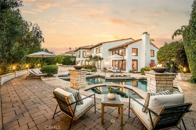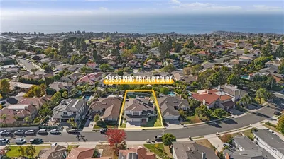 Perched high in the prestigious Monaco community of Rancho Palos Verdes, 30843 Cartier Drive offers a rare opportunity to own a home with uninterrupted, panoramic views of the Pacific Ocean and Catalina Island from nearly every room. As you enter through the oversized double doors, reclaimed from a French church, you're welcomed by a stunning grand staircase and a wall of windows that flood the space with natural light, showcasing breathtaking ocean vistas. The home boasts a functional elegance of architectural antiques, from Juliette balcony doors on the second and third floors, to the first-floor Dutch doors, all of which open to welcome breeze and the babble of a built-in fountain. Tucked into the curve of an exterior staircase, this fountain’s mural and statuary form a perfect backdrop for special-occasion photography. This expansive six-bedroom, five-and-a-half-bathroom residence blends timeless character with high-end upgrades and thoughtful design across multiple levels of functional living. Preserved vintage wallpaper and rich wood flooring throughout nod to its classic roots, while updated lighting and hardware add a fresh, modern feel. A dedicated bar and wine cellar on the lower level make hosting easy, while a spacious laundry room with a cedar-lined closet, and a walk-in pantry add everyday functionality. The luxurious primary suite is located on the main floor, complete with captivating views, a walk-in closet, a private wet bar, and a spa-like bath featuring a jacuzzi tub overlooking the Pacific and Catalina Island. Upstairs, three generously sized bedrooms include a Jack-and-Jill suite and a bedroom with ensuite bath, while the two additional bedrooms on the lower level are ideal for guests, generational living, or a home office. The adjacent kitchen, living room, and bar flow seamlessly into the entertainer’s dream backyard. Mosaic glass and tile accents, custom made by the Edward Beale workshop, lend a subtle touch of artistry, while the tiled bathroom with interior/exterior entrances is perfect for hosting poolside gatherings. Step outside to enjoy the resort-style backyard complete with a large pool and spa, grassy lawn, orange trees, a whimsical treehouse, and a swing set perfect for both relaxing and entertaining. With a 3-stop elevator providing effortless access between levels and elegant finishes throughout, this home is more than a place to live, it’s a lifestyle defined by coastal elegance, privacy, and spectacular vistas.