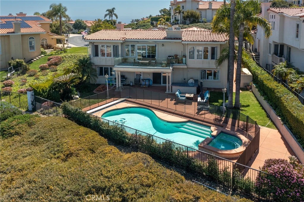 Welcome to Rancho Palos Verdes Estates! This magnificent tri-level home boasts 4 bedrooms and 5 bathrooms, situated on an expansive 9,800+ square foot lot with over 4,000 square feet of living space. 3 car garage, two separate entertaining areas, cozy fireplace, and a balcony that offers breathtaking panoramic views of the Pacific coastline, downtown Los Angeles, surrounding mountains and dazzling city lights, this property is a true gem! Designed for both relaxation and entertainment, the home features an out door built in barbecue area, exquisite pool and jacuzzi, perfect for soaking in the gorgeous sunsets and coastal breezes. The seamless integration of indoor and outdoor spaces creates an ideal setting for hosting gatherings or enjoying private moments in this serene oasis. 24 hour gated private security within a 67 home community and beautifully maintained streets. Minutes away from local golf courses, hiking trails, and top-rated Palos Verdes schools.