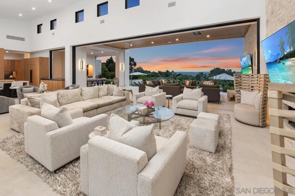 This Custom Estate, 2022, built by Greg Agee is at the highest quality level! Truly a one-of-a-kind property with Panoramic VIEWS! Step onto Italian porcelain floors that flow seamlessly from your floating water entry way to inside to out, and marvel at automated sliding pocket glass doors that flood the space with natural light. The Dorn Bracht kitchen, a chef's dream, boasts Waterworks finishes, luxury top end appliances, Cristallo countertops, and a dazzling backlit backsplash. Each bedroom is an ensuite, ensuring privacy and comfort, while smart home features including Lutron lighting, Sonos Surround Sound, and Nest Thermostats in the palm of your hand to always set the stage for the perfect ambiance. The primary suite, a haven of luxury and tranquility, features Duchateau herringbone flooring, cozy fireplace, automated shades, and amazing VIEWS. Spa-like bath retreat with lavish finishes and fixtures. Outside, explore your private oasis and enjoy a serene a floating edge pool, putting green, sunken firepit, turf soccer field, batting cage and 60-year-old olive trees. 2 bedroom-detached guest house with full kitchen, laundry and living room for your overnight guests. With advanced security, SOLAR, whole house filtration, softener and backup generator, this home combines sophistication and practicality, offering an unparalleled lifestyle.