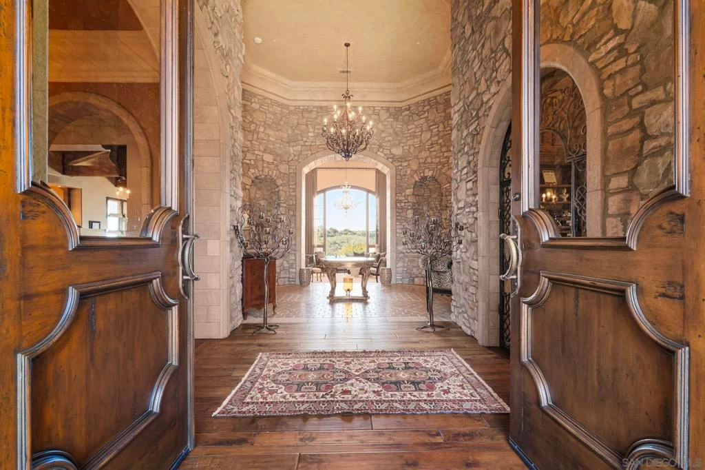Located within the prestigious Bridges of Rancho Santa Fe, this single-level custom estate is truly unparalleled. Set across two exceptional lots and capturing sweeping panoramic views that define luxury living. Timeless architecture, refined finishes, and a resort-inspired outdoor setting come together to create approximately 8,043 square feet of highly functional, beautifully curated living space. A grand formal entry opens to elegantly scaled interiors that flow seamlessly toward the outdoor entertaining areas. An infinity-edge pool frames breathtaking views over the 10th hole of the renowned Bridges Golf Course, offering a dramatic backdrop for both relaxation and sophisticated gatherings. The main residence features 4 spacious bedrooms, an office/library, 4 full bathrooms, and 2 half bathrooms, each space designed with comfort and effortless sophistication in mind. The primary retreat lives like a private sanctuary, complete with a fireplace and French doors leading directly to the backyard. The spa-inspired bathroom offers dual vanities, a generous walk-in shower, soaking tub, and dual closets. Additional interior highlights include a private executive office and a beautifully designed wine cellar thoughtfully positioned at the heart of the home. A standout feature is the fully detached guest house—complete with its own bedroom, bathroom, and kitchenette. Just outside, guests enjoy a spacious yard with a dedicated putting green, creating a playful, private retreat all its own. Perfectly situated at the end of a cul-de-sac and offering the rare advantage of being situated on two premium lots, this estate blends single-level living with extraordinary scale and access to world-class amenities offered within The Bridges.
