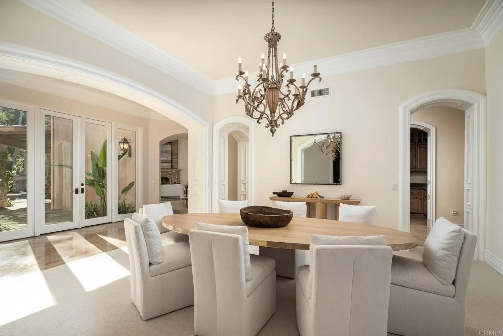 Nestled within the prestigious guard-gated community of The Bridges in Rancho Santa Fe, 6627 Calle Ponte Bella is a masterpiece of timeless elegance and unparalleled craftsmanship. This estate is more than just a home—it's a lifestyle. From the moment you arrive, the lush landscaping and grand presence set the stage for what lies beyond. Step inside to discover an expansive interior that seamlessly blends old-world charm with modern luxury. Soaring ceilings, intricate woodwork, and arched doorways create a warm yet stately ambiance. The gourmet kitchen is a chef's dream, featuring top-of-the-line appliances, custom cabinetry, and a spacious center island perfect for entertaining. The living spaces are equally impressive, with natural light pouring through oversized windows, framing stunning views of rolling hills and meticulously manicured grounds. The primary suite is a private retreat, offering a spa-like bathroom and walk-in closets that rival a boutique. Each additional bedroom includes en-suite accommodations, ensuring comfort and privacy for family and guests alike. Outside, the magic continues—a resort-style pool and spa, outdoor kitchen, and multiple seating areas provide the perfect backdrop for alfresco dining, sunset cocktails, or simply soaking in the serenity of your surroundings. With impeccable design, a prime location, and unmatched lifestyle offerings, 6627 Calle Ponte Bella is not just a home—it’s an experience waiting to be lived.