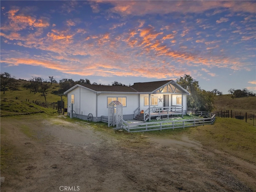 Experience the best of country living with this charming home that offers space, style, and natural beauty! Nestled on over four acres, this property boasts incredible curb appeal, featuring three bedrooms, two bathrooms, updated flooring throughout, and a roof installed just last year. The spacious floor plan includes a bright and airy living room filled with natural light and an indoor utility room. Step outside to your covered patio and take in the breathtaking views of distant mountain ranges, majestic oak trees, and striking rock formations. The property is fully fenced with sectioned pastures, making it ideal for animals and offering plenty of room to roam and explore. Additional features include multiple accessory units, such as a workshop equipped with electricity and water, and a tack room for your equestrian or storage needs. Don’t miss this unique opportunity to own your slice of country paradise—schedule your private showing today!