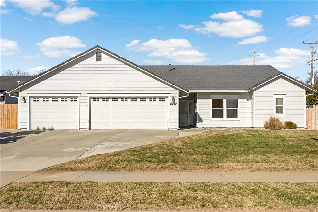 This beautiful 2003-built home offers 3 bedrooms, 2 full bathrooms, and a spacious 3-car garage in a desirable edge-of-town location close to schools and shopping. Enjoy a bright, open floor plan with high ceilings, ceiling fans, newer laminate flooring, and abundant storage throughout. The primary suite features a garden tub, walk-in shower, and a large walk-in closet. The kitchen includes oak cabinetry, a gas range/oven, microwave, and breakfast bar—perfect for everyday living and entertaining. Additional highlights include dual vanity sinks in both bathrooms, an indoor laundry room, parking on side of house, a wide driveway apron, and plenty of off-street parking. Fully landscaped front and backyards with automatic sprinklers, a fenced backyard, and an easy-maintenance patio. This home is complete, neat, tidy, and truly move-in-ready.