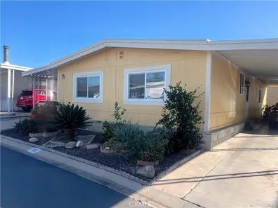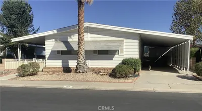 This lovely home in the highly desired Royal Carriage Estates 55+ community in Redlands features 2 bedrooms and 2 baths, newer energy efficient vinyl windows throughout, refrigerator, washer and dryer included with the property and enclosed garage with automatic door opener!! There is a spacious shed in the back yard that's perfect for storage, tinkering or crafting room. You own the land so there is no space rent! The low HOA dues includes your water, trash and sewer, use of the clubhouse, swimming pool, spa and grounds maintenance.