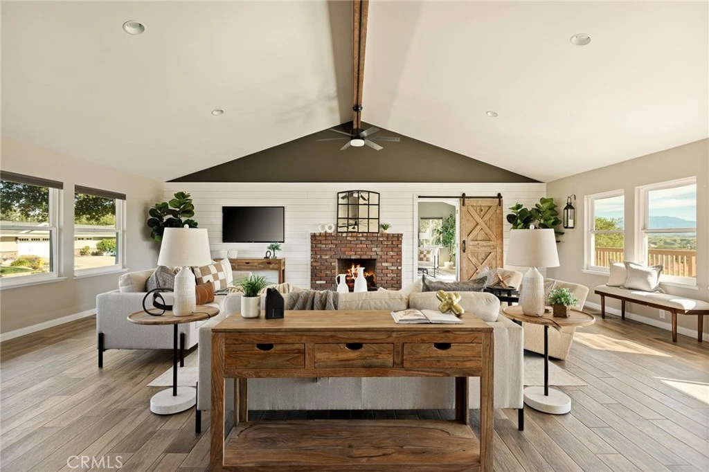 Spanning over 3,700 square feet, this exceptional 4-bedroom, 4-bathroom home is defined by dramatic architecture and breathtaking canyon views. The main level features a stunning great room with vaulted ceilings, exposed beam detail, a brick fireplace, and expansive windows that frame the surrounding hills. Sliding doors open to a massive Trex deck with multiple seating areas—ideal for entertaining or simply enjoying the sweeping views. The open-concept layout includes a dining area and a beautifully designed kitchen with a large center island and built-in banquette seating. The primary suite is a true retreat, offering vaulted ceilings, serene views, direct access to the rear deck, and a spacious en-suite bath with separate soaking tub and shower, dual vanities, and a walk-in closet. Two additional bedrooms and two bathrooms complete the main level. The lower level offers a private apartment with a sitting area, eat-in kitchen, bathroom, and separate bedroom with additional living space. Accessible from both the interior of the home and a private exterior entrance, this space also enjoys incredible canyon views—ideal for guests, extended family, or multigenerational living. Situated on a large lot with room for RV or boat parking.