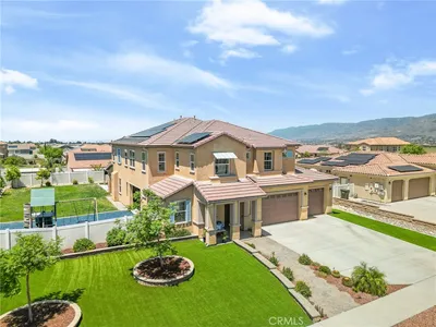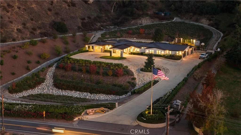 Experience refined luxury living on more than six acres in the highly desirable Live Oak Canyon area of Redlands. Completed in 2020, this custom single story estate offers an elegant blend of modern design, exceptional craftsmanship, and tranquil natural surroundings. High ceilings and an open concept layout create an impressive sense of space, while expansive windows provide beautiful views and seamless indoor outdoor living. The gourmet kitchen features top tier stainless steel appliances, a steam oven, six burner range, built in refrigerator, oversized stone island, and a spacious walk in pantry. The main living areas are enhanced by wide plank flooring, designer chandeliers, and custom cabinetry throughout. Four of the five bedrooms include private ensuite bathrooms and walk in closets. The fifth bedroom is currently used as a beautifully finished office, but can easily be converted back to a full bedroom, making a fantastic fit for a large family. Additional interiors include a dedicated exercise room and a large game and entertainment room complete with a full wet bar. The covered outdoor living area is designed for year round enjoyment and includes a built in barbecue, warming drawer, ice chest, and generous space for dining and relaxation. The grounds are thoughtfully planned for low maintenance and feature more than forty fruit trees, multiple citrus varieties, and grape vines. An additional graded pad on the property offers the potential for a future pool, casita, or workshop. A four car garage, RV parking, a climate controlled storage room, dual HVAC system, and extensive guest parking further elevate the functionality of the estate. No detail has been overlooked, from the fire-retardant metal roof and smooth-finish exterior to the hundreds of thousands invested in premium hardscape and landscape upgrades. A wrap-around driveway effortlessly accommodates 20+ vehicles, while a self-sustained irrigation system supports nearly all 6 acres with remarkable efficiency. Attempting to recreate this custom estate for the same price would be nearly impossible the owner has meticulously curated every inch of this property to deliver an unparalleled living experience. property is private, peaceful, and truly one of a kind, offering an exceptional level of luxury within the beauty of Live Oak Canyon.
