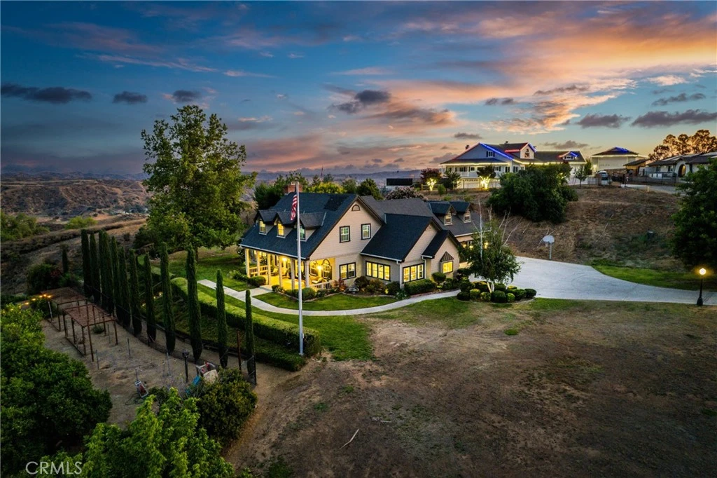 Welcome to this stunning Cape Cod-style estate nestled in the prestigious hills of Redlands, offering nearly 3 acres of privacy, panoramic mountain and canyon views, and incredible indoor-outdoor living. With over 130 fruit, citrus, avocado, olive, and pecan trees, plus raised garden beds, this home is ideal for those seeking a self-sustaining lifestyle. A lower orchard area with a stage and seating creates a unique venue-ready space for events, gatherings, or peaceful retreats. Inside, the home offers 3,431 sqft (plus an additional 600 sqft loft with a theater and bonus room), featuring dual primary suites on both levels. The heart of the home is the dream gourmet kitchen, a true chef’s haven, designed with stone countertops, custom cabinetry, luxury stainless steel appliance (Subzero Fridge, Wolf Ovens, Viking Stove and warming drawer), and a massive center island perfect for entertaining, prepping, or gathering around with loved ones. Its open layout flows seamlessly into the main living area, creating a warm and welcoming space. You’ll also find rich hickory hardwood floors, tile bathrooms, and an abundance of natural light throughout. Step outside to your private oasis featuring an in-ground pool and spa, brick wood-fired pizza oven, and multiple patios that capture the breathtaking views. Additional highlights include fully owned solar panels, three Tesla Powerwall batteries, seven water shares, a 3-car garage, and extended driveway parking. Located in the sought after Redlands Community, this one-of-a-kind estate offers luxury, sustainability, and space all in one breathtaking package. Don't miss your chance to own one of Redlands’ most iconic homes.