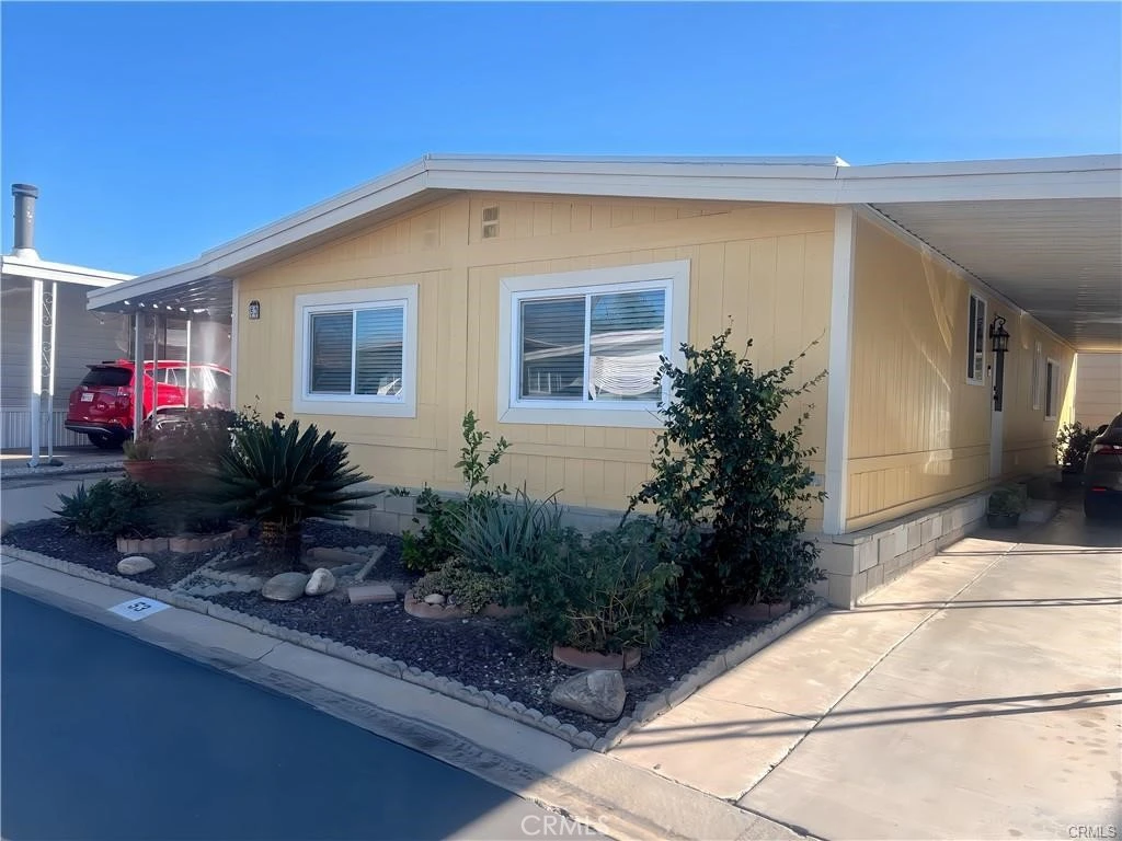 Welcome to this charming 3-bedroom, 2-bathroom mobile home at 626 N Dearborn St #53, Redlands, CA 92374. Situated just moments from downtown Redlands, you'll enjoy convenient access to shopping centers, dining, and local amenities, all while benefiting from low space rent. Step outside and discover a tranquil outdoor space with a key lime tree on the far left and a recently planted dwarf Meyer lemon tree just under the window, adding a touch of greenery and flavor to your surroundings. Inside, you'll find a home that’s both modern and comfortable, featuring laminate flooring throughout and mounted TVs that will remain with the property as a bonus. The kitchen is equipped with a newly replaced dishwasher, and the washer/dryer will stay if the buyer desires. A 50-gallon water heater was replaced less than a year ago, ensuring peace of mind for years to come. An optional stove is available to suit your cooking preferences. The home also includes a 6x10 shed for extra storage.The Roof has been recently replaced March 2023 and a vapor barrier underneath the manufactured home.Enjoy a spacious front patio that provides the perfect spot for relaxing or entertaining, and a safety door that was added in the last year for added peace of mind. For those who love to unwind, a pool and Jacuzzi are located just steps from your door, offering a resort-like retreat.This home is truly a must-see—fall in love with the comfort, convenience, and charm that could be yours today