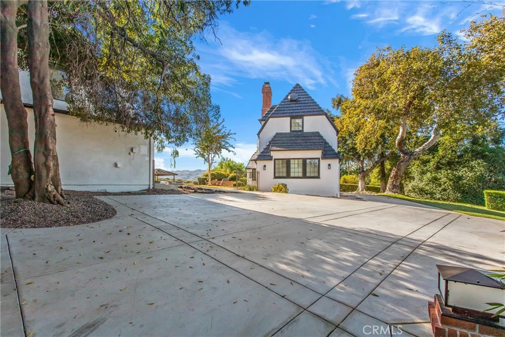 A stand-apart estate nestled in the Redlands foothills, this sprawling and timeless property captures breathtaking panoramic mountain and valley views. A hedged entry and charming brick pathway lead to a generous front lawn, while a private driveway provides ample parking and access to a detached three-car garage. Inside, abundant natural light highlights classic wood paneling and a warm, time-honored design. The formal living and dining areas are anchored by an inviting fireplace, perfect for gatherings, while an oversized den offers comfortable everyday living. The welcoming kitchen features upgraded appliances and its own fireplace, complemented by a spacious laundry and craft room, completing the main level. Up the winding staircase, the primary suite with a walk-in closet and three additional bedrooms all enjoy impressive scenic views. Outdoors, the expansive grounds are designed for both relaxation and entertaining, featuring a brick patio with a built-in barbecue, an outdoor gazebo, and mature landscaping. A thriving orchard with a variety of citrus and nut trees, along with additional garden space, enhances the estate’s abundance. Additional highlights include a large detached structure with potential for an art studio, office, or garage conversion, along with dual newer AC units serving the main home. With sweeping mountain views and limitless possibilities, this remarkable estate is a rare and unique Redlands opportunity.