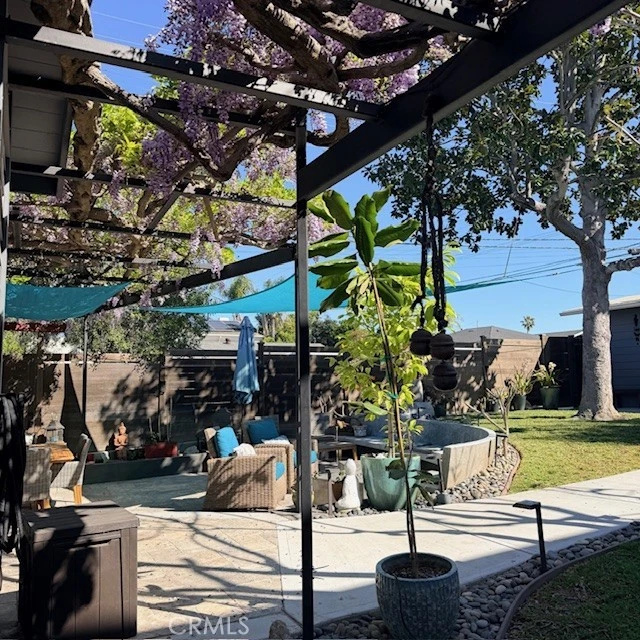 Welcome to this beautifully maintained California bungalow-style home offering the perfect blend of indoor-outdoor living and modern comfort. Nestled in a charming neighborhood, this property features a lush, landscaped yard with mature trees, including stunning wisteria-covered pergolas that create a serene and private retreat. Step outside to your own resort-style backyard, complete with multiple seating areas, custom shade sails, and a thoughtfully designed patio—perfect for entertaining or relaxing year-round. The outdoor living space is ideal for hosting gatherings, dining al fresco, or enjoying peaceful mornings under the canopy of greenery. Inside, the home showcases a bright and functional layout with a beautifully updated kitchen featuring granite countertops, stainless steel appliances, custom cabinetry, and designer backsplash. The living areas offer warmth and character with hardwood flooring, abundant natural light, and an open flow ideal for everyday living. Additional highlights include: • Updated bathrooms • Dedicated laundry area with built-in storage • Bedrooms with ample natural light • Turnkey condition with pride of ownership throughout • HVAC and Central Heating • Gas Fireplace Conveniently located near shopping, dining, schools, and major freeways, this home offers both comfort and accessibility.
