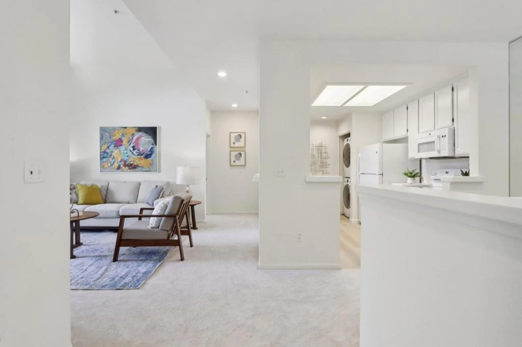 Welcome to this bright and spacious 2-bedroom, 2-bath condo located in beautiful Redwood Shores. A highly desirable top-floor end unit with soaring ceilings in the living room creates an airy open atmosphere. The open-concept layout features a comfortable living area, defined dining space, and a modern kitchen perfect for both entertaining and everyday living. Step out onto your private, spacious balcony ideal for morning coffee or unwinding at sunset. Both bedrooms are generously sized, with the primary bedroom also having access to the balcony. New carpet and paint throughout. The unit also includes in-home laundry for your convenience. Enjoy the serenity of a peaceful, landscaped community complete with a pool and spa and close to walking trails. A detached one-car garage adds convenience and storage. Just a short stroll to The Marketplace at Redwood Shores, offering shopping, dining, and cafes to meet your daily needs. Top-rated schools and easy access to Highway 101 complete this exceptional offering. Don't miss this rare opportunity to live in one of the Peninsulas most sought-after neighborhoods!