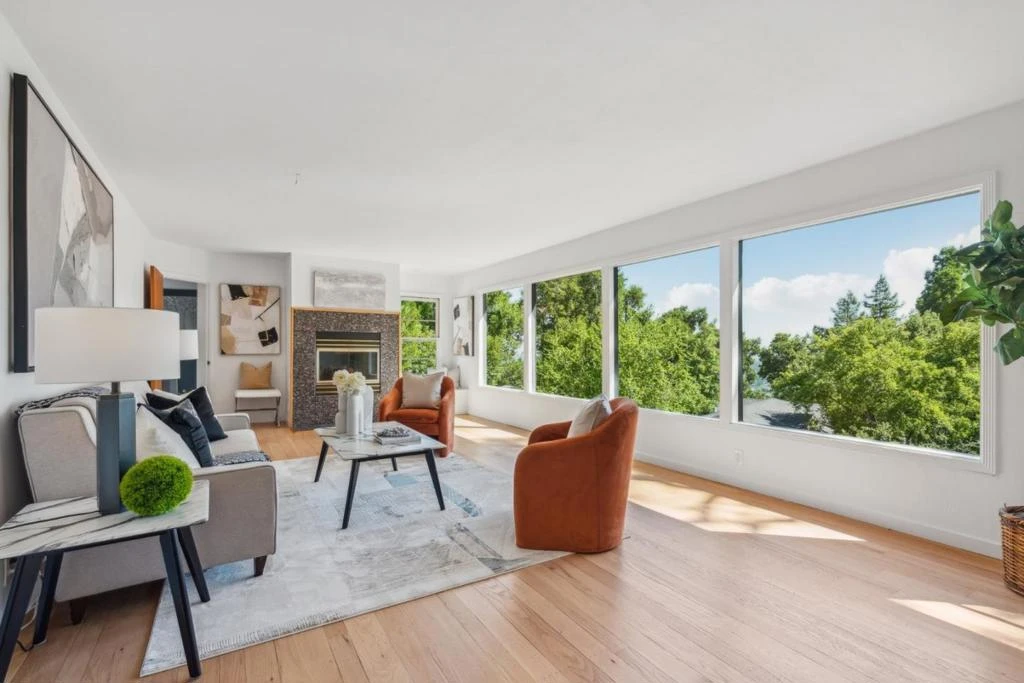 Discover this mid-century modern gem in desirable Emerald Hills, boasting Bay Views and an abundance of natural light. This home offers an incredible opportunity to live comfortably now with the potential to expand in the future. Situated on an oversized lot, this peaceful sanctuary features multiple areas for outdoor living. The inviting living/dining room with a fireplace is perfect for gatherings, while the new chef's kitchen impresses with stone countertops, white cabinetry, stainless steel appliances, and an eat-in area. Three generously sized bedrooms share a hall bath. A large fourth bedroom/bonus room with views includes a separate entrance, bathroom, and kitchenette, making it ideal as an attached ADU, family room, or separate apartment. Newly refinished hardwood floors, fresh interior and exterior paint, and new light fixtures enhance this must-see home. Additional spaces include a bonus room downstairs and a large unfinished basement, offering unlimited possibilities to customize the home to your liking. Enjoy the peace and tranquility of a park-like setting, conveniently located near Highways 280/101, top-rated Roy Cloud school (buyer to verify), and downtown Redwood City.