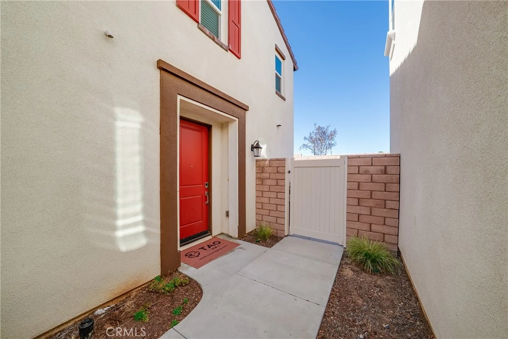 Move-in ready 3-bedroom, 2.5-bath home in a gated Rialto community, featuring a private backyard, primary suite with distant mountain views, and fully paid-off solar panels. Spanning approximately 1,586 sq ft, this bright two-story home features a functional open-concept layout that seamlessly connects the living, dining, and kitchen areas, making it perfect for everyday living and entertaining. The modern kitchen features quartz countertops, white shaker cabinetry, stainless steel appliances, and a peninsula with bar seating beneath stylish pendant lighting. Sliding glass doors bring in abundant natural light and provide easy access to the backyard, ideal for outdoor dining or relaxing. Upstairs, the primary suite provides a walk-in closet and a well-appointed ensuite with dual sinks, a soaking tub, and a separate shower. Two additional bedrooms share a full bathroom, while the upstairs laundry adds convenience. Additional highlights include an attached two-car garage and low utility costs thanks to the fully paid-off solar panels. Residents enjoy community amenities, including a dog park, playground, picnic areas, and green spaces, all conveniently located near schools, shopping, and dining, with easy access to the 210 and 10 freeways.