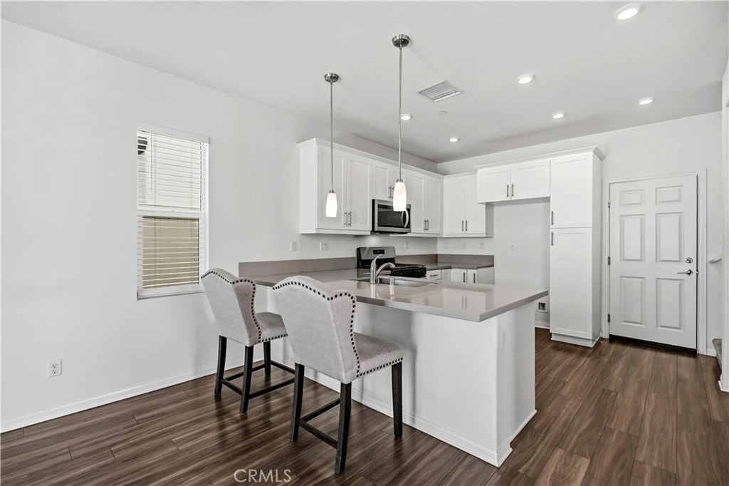Located in a quiet and desirable community in the heart of Rialto, this modern two-story home offers 3 bedrooms, 2.5 bathrooms, and approximately 1,456 sq ft of well-designed living space. The main level features an open floor plan with a spacious living area, dining space, and a contemporary kitchen equipped with a large center island, quartz countertops, white shaker cabinetry, and a pantry. Durable waterproof laminate flooring runs through the main living areas and upstairs laundry room, while the bedrooms are finished with comfortable carpeting. Upstairs, the generous primary suite includes a walk-in closet, dual-sink vanity, separate shower, and a relaxing soaking tub. Two additional bedrooms provide ample closet space, along with a versatile loft area that can serve as a home office, study space, or entertainment lounge. The laundry room is conveniently positioned near the bedrooms for everyday ease. Additional features include an attached two-car garage and a cozy private patio, ideal for relaxing or enjoying time with family. The home is equipped with fully paid-off solar panels, offering improved energy efficiency and reduced utility costs. Conveniently situated near local schools, parks, and shopping destinations such as Renaissance Marketplace, with easy access to the 210 and 10 freeways, this move-in ready home is a great opportunity in one of Rialto’s growing neighborhoods.