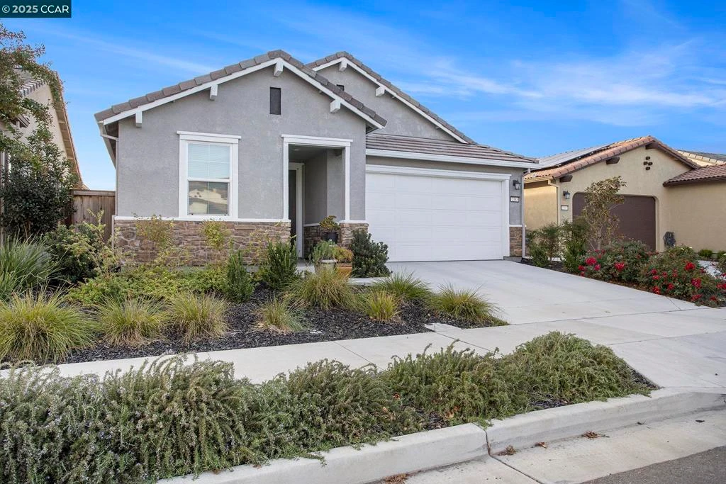 Price Improved! Experience refined, low-maintenance living in this beautifully upgraded DeNova Homes Bungalow model located in Rio Vista’s prestigious Luminescence 55+ community. This elegant 2-bedroom, 2-bath residence offers 1,435 sq. ft. of open-concept living with designer 18x18 tile flooring throughout the main living areas and plush carpeted bedrooms for comfort and privacy. The chef-inspired kitchen showcases granite countertops, premium stainless steel LG appliances, a 5-burner gas range, French-door refrigerator, built-in microwave, dishwasher, and a spacious walk-in pantry. Over $30,000 in upgrades include soft-close cabinetry, OWNED SOLAR with EV charger, and a generous covered patio with dual ceiling fans, ideal for elegant outdoor entertaining. Residents enjoy exclusive access to Club Liberty’s resort-style amenities, including pool, spa, fitness center, pickleball, tennis, bocce, wine storage, gardens, art studios, and vibrant social spaces. An exceptional opportunity for elevated 55+ living. Downsize Without Compromise!!! Open House Sunday, March 8th, from 2:00 to 4:00 PM.
