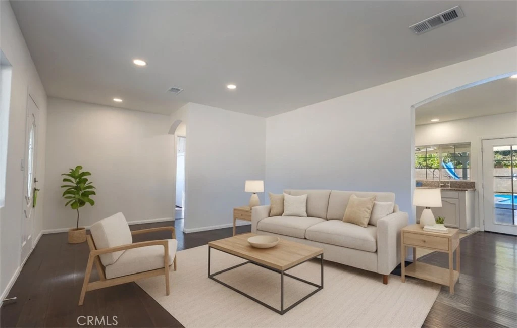 Welcome to this beautifully refreshed single-story Riverside home featuring 3 bedrooms and 2 bathrooms on a spacious 7,405 sq. ft. lot with a sparkling pool! Step inside to discover a bright, inviting interior illuminated by new recessed LED lighting that highlights the home’s freshly painted “Whipped Cream” white walls—creating a modern and elegant feel throughout. The kitchen comes fully equipped with all included appliances: refrigerator, gas range, and microwave—perfect for moving right in. The bathrooms have been tastefully remodeled, showcasing brand-new vanities, updated plumbing and electrical fixtures, and stylish tile finishes. The primary suite features its own private bathroom with a separate toilet area, offering extra comfort and convenience. Outside, enjoy your own backyard retreat with a recently refinished, shiny-blue pool that’s ready for summer gatherings. The spacious yard offers plenty of room for entertaining, barbecues, or relaxing weekends by the pool. An additional fenced side area provides a secure space for pets or a private garden setup. This home also features a brand-new roof, central heating and cooling, and fresh exterior and interior paint, ensuring peace of mind for years to come. Located near shopping, dining, and schools within the Alvord Unified School District, this move-in-ready home perfectly balances comfort, style, and convenience.