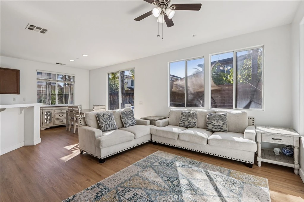 Welcome to this warm and inviting 3-bedroom, 2.5-bath home, ideally located on a peaceful cul-de-sac in the desirable Coronado community of Riverside—just a short walk to La Sierra University. The open floor plan flows seamlessly to the back patio, creating an easy indoor-outdoor connection perfect for everyday living and entertaining. All flooring throughout the home is brand new, and the upstairs bedrooms are thoughtfully equipped with remote-controlled blackout window blinds for added comfort and privacy. An EV charger adds modern convenience for electric vehicle owners. The spacious backyard offers flexible space for a play area, relaxing, or gathering around the firepit. Residents enjoy access to two community pool areas along with a nearby dog park. Conveniently close to the 91 Freeway, shopping, and dining, this home delivers the perfect blend of comfort, community, and convenience.