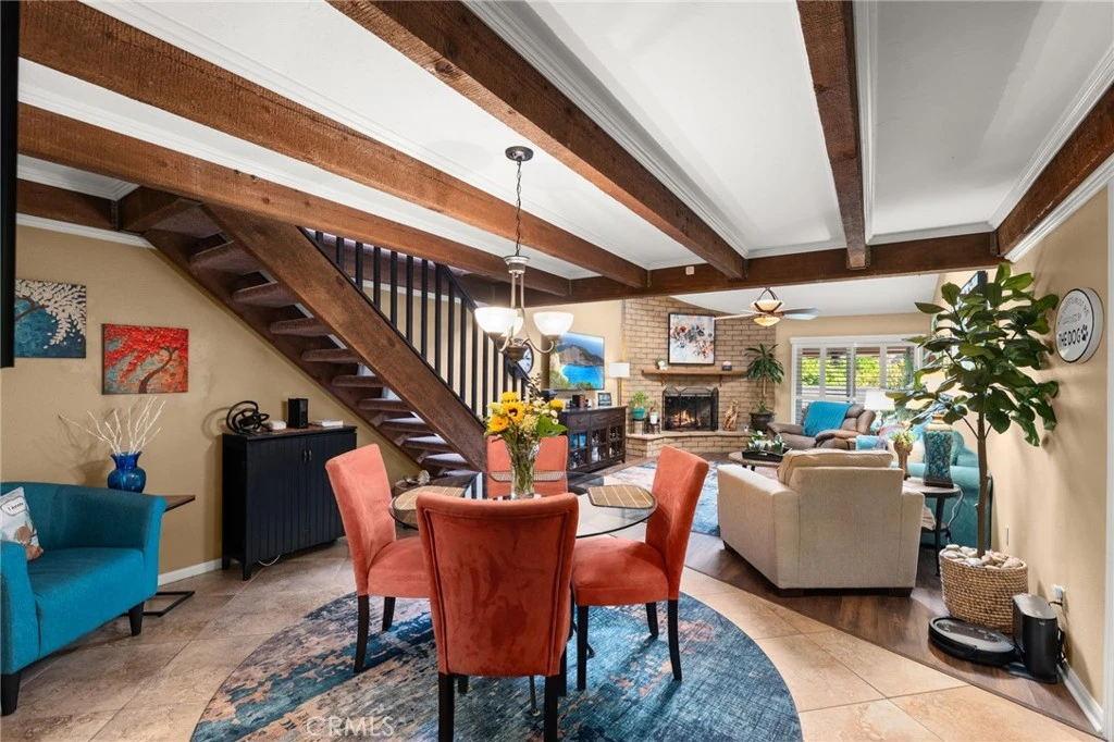 STUNNINGLY REMODELED 4BD/2BA + LOFT IN RIVERSIDE! Experience modern luxury in this meticulously upgraded home featuring high vaulted ceilings, exposed wood beams, fireplace and elegant plantation shutters throughout. The fully remodeled chef’s kitchen is a showstopper with premium granite countertops, designer cabinetry, and a high-end stainless steel appliance suite. The primary suite boasts a spa-like master bathroom highlighted by a massive walk-in shower with dramatic book-matched stone slabs and a rainfall showerhead. Relax by the living room fireplace or head upstairs to the 4th bedroom and expansive loft, the perfect "flex space" for a home office or media room. Beautiful new flooring flows to the private covered patio, ideal for year-round entertaining. This turnkey gem offers sophisticated design and an open-concept layout in a prime 92505 location. Move-in ready—schedule your tour today!