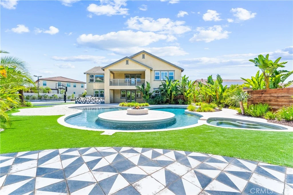 Welcome to a private resort-style estate nestled in the hills of the Tramonte neighborhood within the prestigious Citrus Heights community—an area renowned for its luxury living and semi-custom homes. This exceptional 6-bedroom, 4.5-bathroom residence offers 5,270 square feet of refined interior space on a beautifully landscaped 24,829 square foot lot. From the moment you arrive, you’ll be captivated by the seamless blend of elegance, comfort, and functionality. The grand interior features sleek vinyl flooring throughout, a formal dining room perfect for entertaining, and a spacious living room with surround sound and a cozy fireplace. The chef’s kitchen is equipped with double ovens, a built-in microwave, and flows effortlessly into the heart of the home. Just off the kitchen, a stylish dry bar with wine fridge creates the ideal setting for hosting guests. Perfect for multi-generational living or private guest quarters, the fully equipped NEXT GEN SUITE features its own separate entrance and garage, stand-up shower, sink, toilet, closet, stackable washer & dryer, personal kitchenette complete with microwave and fridge. Upstairs, the luxurious primary suite offers a private balcony, spa-inspired bathroom with soaking tub, separate shower, and dual vanities with individual counters. A spacious bonus room—considered a loft—is ideal for movie nights or game days, complete with a projector and surround sound. The upstairs laundry room includes a sink and custom cabinetry for added convenience. Every bedroom closet has been upgraded with custom built-ins, effectively doubling the usable closet space throughout the home. Outside, your personal paradise awaits: a 7-foot heated pool, spa, lazy river with jets, fire pit, built-in trampoline, half-court basketball area, and a gourmet outdoor kitchen with BBQ, fridge, sink, smoker, and beer tap. Backyard speakers elevate the ambiance, surrounded by lush landscaping with sego and pygmy palms, along with an orchard featuring apple, lemon, mandarin, avocado, and banana trees. The expansive 5-car tandem garage includes built-in cabinets, surround sound, and an electric car charger. With paid-off solar and thoughtful upgrades throughout, this home is more than a residence—it’s a lifestyle. Zoned for top-rated schools including Riverside STEM Academy, Frank Augustus Miller Middle School, and Lake Mathews Elementary.