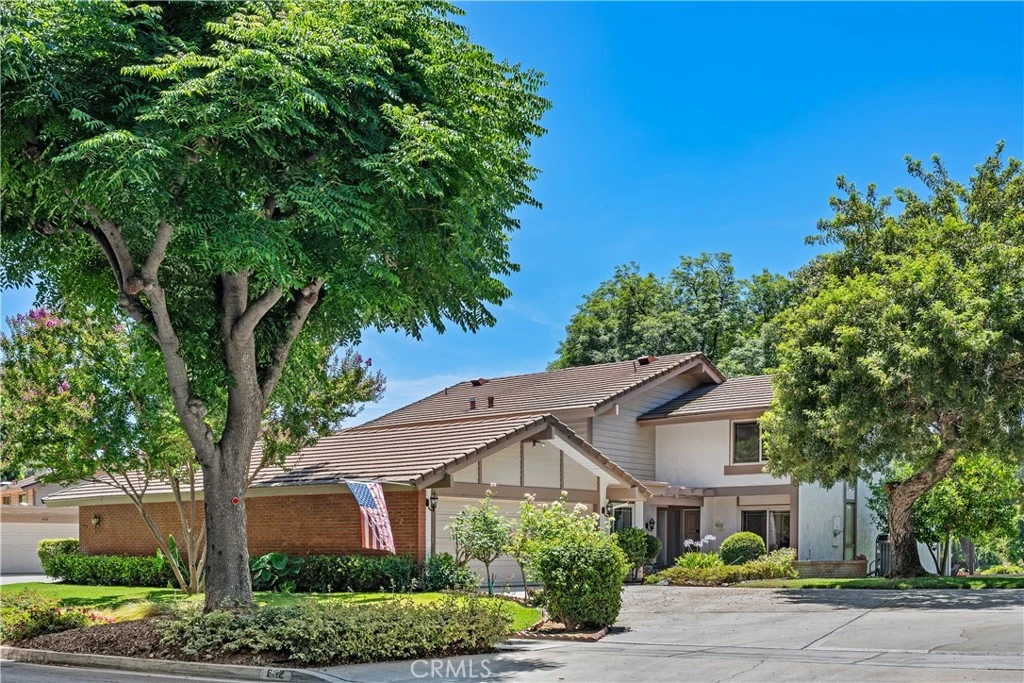 Welcome to Canyon Crest Villas—a tranquil neighborhood situated adjacent to the Canyon Crest Country Club golf course. This residence sits next to the 3rd tee and features a rear patio that provides stunning views of both the golf course and surrounding hills. The home’s inviting tri-level layout creates an open atmosphere, enhanced by vaulted ceilings and skylights that allow natural light to fill the space. Entry is on the middle level, where you will find the dining room, kitchen, laundry area, and garage access. Ceramic tile flooring extends throughout these main living areas, while new carpeting has been installed in the remaining rooms. The kitchen includes a comfortable eating area and ample counter space, ideal for preparing gourmet meals. A sunken living room below the entry terrace features a built-in storage and entertainment unit, multiple seating options, and a gas fireplace with a marble surround. Sliding doors provide easy access to the back patio. Adjacent to the living room, the primary bedroom suite boasts hardwood floors, a sliding door to the patio with picturesque golf course views. The primary bath space features a dual sink vanity, a spacious shower, and multiple closets—including a unique under-stair storage space. Upstairs are two additional bedrooms, one equipped with built-in office cabinetry overlooking the living area. The serene setting along the golf course offers the perfect environment to relax and enjoy the outdoors from the back patio. Residents benefit from exceptional community amenities, including an HOA clubhouse, pool, and spa—offering a resort-style experience just minutes from shopping, UCR, and all the attractions Riverside has to offer.