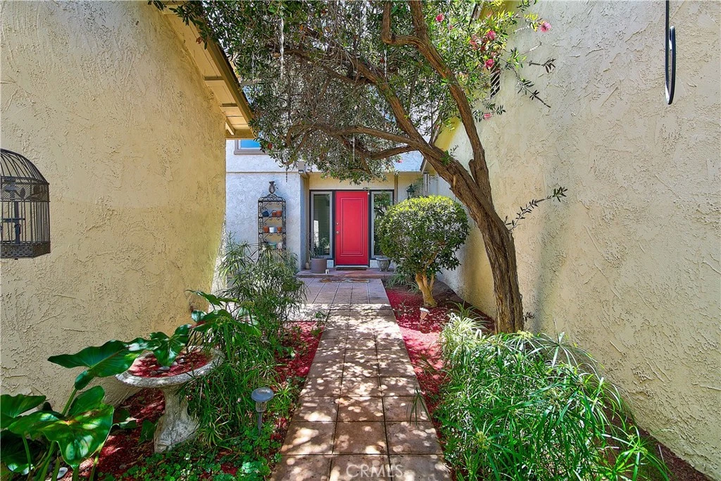 Wonderful opportunity to live in the highly desirable community of “The Trees,” ideally situated just off historic Victoria Avenue. Enter through a private, gated courtyard featuring a charming wishing well that sets the tone for this inviting home. Inside, you’ll find a warm and welcoming living room with a cozy fireplace, along with a dining area that opens via sliding glass doors to a serene, private patio complete with a tranquil fountain. The adjacent remodeled kitchen is thoughtfully designed with recessed lighting, built-in appliances, soft-close cabinetry with pull-out drawers, a built-in wine rack, and views of the front courtyard. It flows seamlessly into a breakfast nook with direct access to the backyard patio—perfect for indoor-outdoor living. Upstairs, the spacious primary suite offers a private balcony overlooking lush community landscaping, a large walk-in closet, and an en-suite bathroom. An additional adjoining room—converted from a former bedroom—provides flexible space ideal for an office, nursery, or retreat. Two more generously sized bedrooms with mirrored closet doors share a full bathroom on the upper level. Additional highlights include newer dual-pane windows and three sliding glass doors, newer water heater, and a two-car garage with tons built-in storage. Just beyond the patio gate, enjoy park-like grounds with mature trees and scenic walking paths throughout the community. Residents of this sought-after neighborhood have access to resort-style amenities including a pool, kiddie pool, covered picnic area, and basketball court. The HOA also includes water, exterior maintenance, roof care, and on-site RV parking. Enjoy peaceful, serene living while being centrally located near shopping, dining, and everyday conveniences. Schedule your private showing today!