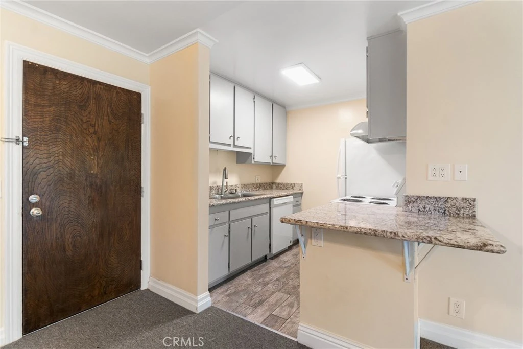 Welcome to this inviting 1-bedroom, 1-bath condo in the sought-after The Estates community of Rolling Hills Estates. Situated on the top floor, Unit #317 offers privacy, tranquil greenery views, and a spacious open layout perfect for comfortable living or a stylish retreat. Step inside to discover a bright living space with fresh interior paint, crown molding, and direct access to a peaceful private balcony—ideal for morning coffee or sunset relaxation. The kitchen features granite countertops, classic white appliances, and a convenient breakfast bar that flows into the living area. The generously sized bedroom offers great natural light and a large closet, while the updated bathroom includes a modern vanity, granite counters, and a full tub/shower combo with grab bars for accessibility. Additional highlights include newer flooring in the kitchen and bath, ceiling fan, and extra storage. Residents enjoy access to resort-style amenities: lush landscaping, sparkling pool and spa, sauna, tennis courts, fitness center, and a community clubhouse. Located just minutes from shopping, restaurants, nature trails, and award-winning Palos Verdes schools. Whether you're a first-time buyer, investor, or downsizer—this is the perfect blend of convenience, value, and location.