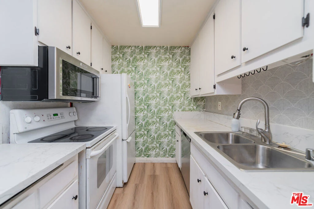 Beautiful top-floor condo featuring a serene balcony with lush, tree-filled views. This light-soaked residence is located within a resort-style community and offers access to highly regarded schools. Just steps away, enjoy a sun-drenched sparkling pool and a spacious community room perfect for gatherings. Continue along the scenic paths to two community tennis courts, all thoughtfully integrated into the tranquil grounds. The unit has been recently renovated, showcasing new hard-surface flooring throughout, a fully remodeled bathroom with modern fixtures, a kitchen with updates including sleek countertops and contemporary finishes, and a large walk-in closet providing abundant storage. Tasteful designer touches and quality materials elevate the home's modern look and feel, creating an inviting space that combines comfort and style. Step onto the private balcony to unwind and take in the peaceful setting surrounded by mature, majestic trees. Additional highlights include one dedicated parking space plus ample guest parking within the community. Ideally situated adjacent to the South Coast Botanic Garden, this community offers an exceptional setting for those who value nature, comfort, and convenience -- a perfect blend of resort living and neighborhood charm.