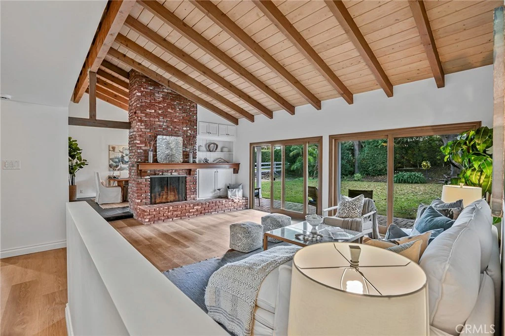 Located on a quiet cul-de-sac in Rolling Hills Estates. This property is a beautifully remodeled Ranch style home on a large lot (16,915 sq. ft.) with 80-foot-tall trees. Four bedrooms and 2.5 bathrooms, 1959 sq. ft., with an oversized two car garage and attached workshop (680 sq. ft.). There is a large, covered patio for outdoor living. In addition, the home is attached to the garage with a covered breezeway. The classic Ranch architecture is perfect even now and was custom designed. The living room and dining room have an impressive cathedral, beamed ceiling. Both the living room and dining room look directly at the large grassy yard through multiple glass panels and sliding doors that flood the home with natural light. To complete the ensemble, the living room has a grand floor to ceiling brick fireplace. The kitchen and baths have been remodeled and embody current design trends. New luxury vinyl flooring is throughout, and the home is punctuated with designer lighting and other modern touches. The huge view lot is part of the Palomino Ranchos subdivision and is widely admired for its peaceful lifestyle. The yard is ideal for garden parties, fun barbecue cookouts and even wedding receptions! Come home to your private sanctuary surrounded by super tall trees and a rose garden. This is the Palos Verdes you’ve heard about!