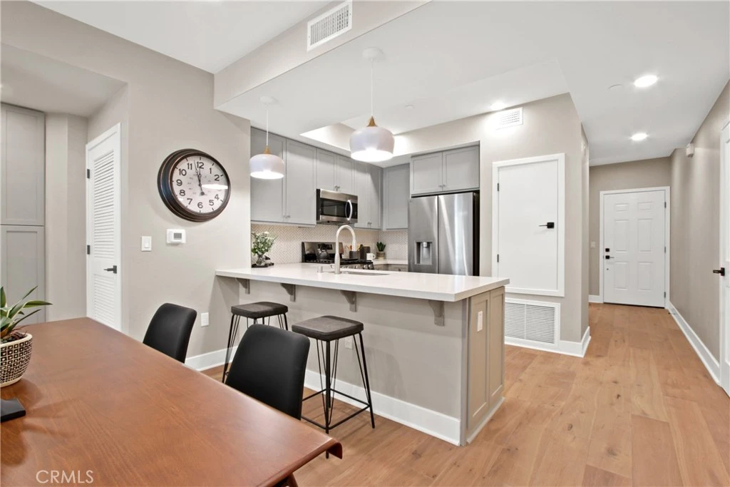 La Sevilla is a brand-new collection of upscale single-level condominiums in the prestigious Rolling Hills Estates, seamlessly combining comfort, simplicity, and modern design. Plan F features an open concept living and dining area that flows effortlessly onto a private balcony, creating a perfect blend of indoor relaxation and outdoor enjoyment. The home showcases elegant finishes, including wide-plank hardwood flooring throughout, quartz countertops, a full tile backsplash, and a premium stainless-steel appliance package with a French-door refrigerator, built-in microwave, gas range with AirFry, and dishwasher. The spacious primary suite includes a luxurious bathroom with a glass-enclosed shower, quartz counters, designer porcelain tile, and stylish stainless-steel accents. Residents have access to a grand courtyard with inviting sitting areas and a dual fireplace, as well as a modern fitness center, remote-work lounge, community room, and a barbecue area with a firepit—ideal for gatherings and leisure. Situated on the scenic Palos Verdes Peninsula, La Sevilla offers the tranquility of a high-end neighborhood combined with exceptional walkability. Just steps away are Peninsula Center shops, the public library, grocery stores, coffee shops, and a variety of local restaurants. Additionally, the community is minutes from scenic hiking trails and the stunning beaches of Palos Verdes, making it easy to enjoy outdoor adventures and coastal beauty.