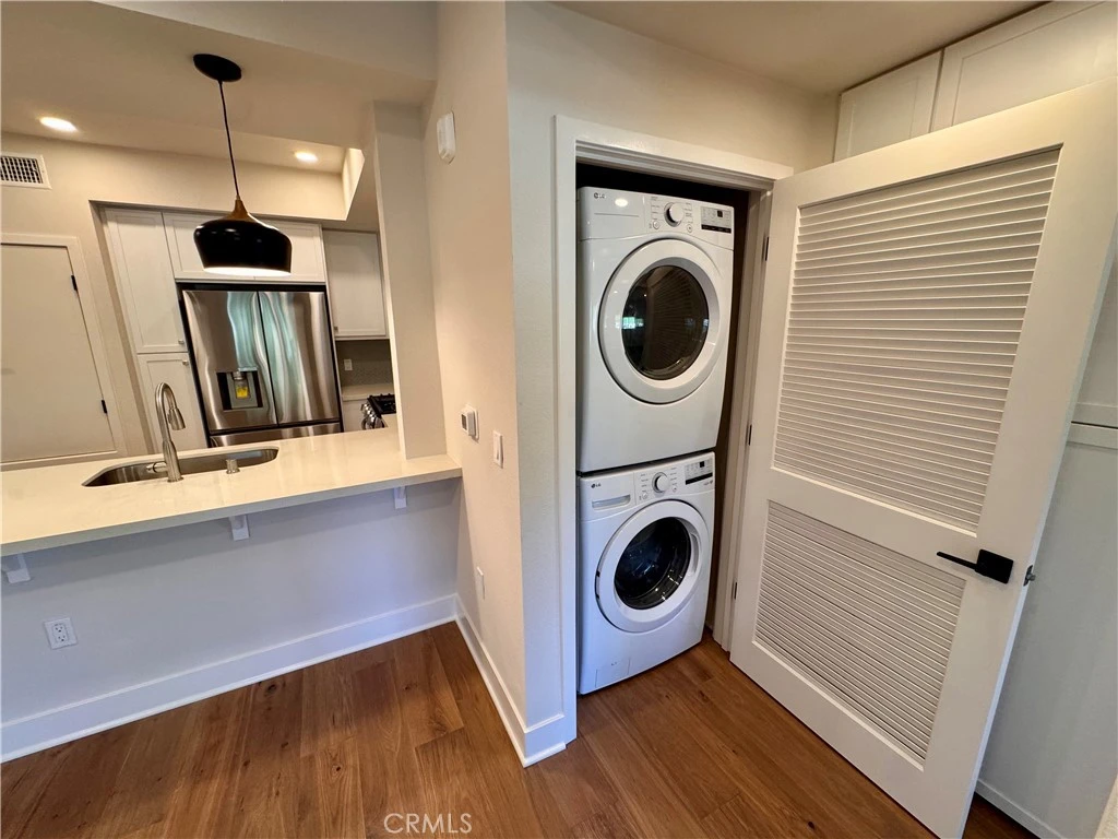 BRAND NEW, never-occupied top-floor Plan C condo located in the La Sevillia community in Rolling Hills Estates. This 2-bedroom, 2-bathroom residence features an open-concept living and dining area that flows seamlessly to a private balcony, offering an ideal balance of indoor comfort and outdoor enjoyment. The home showcases elegant finishes throughout, including wide-plank hardwood flooring, quartz countertops, a full tile backsplash, and a premium stainless-steel appliance package featuring a French-door refrigerator, built-in microwave, dishwasher, and gas range. The spacious primary suite with an attached private balcony includes a spa-inspired bathroom with a glass-enclosed walk-in shower, quartz counters, designer porcelain tile, and contemporary stainless-steel accents. Additional highlights include central A/C and heating, recessed LED lighting, in-unit front-loading washer and dryer, and two assigned parking spaces with access to EV charging. Community amenities include a grand landscaped courtyard with seating areas and dual fireplace, modern fitness center, remote-work lounge, community room with a pool table, barbecue area with countertop dining and barstools, fire pit, and covered patio, secure package room, and bike storage. Centrally located with convenient access to shopping, dining, grocery stores, coffee shops, public library and everyday amenities, while also just minutes from scenic hiking trails and the beach makes this condo a must see.