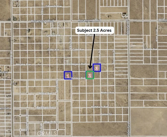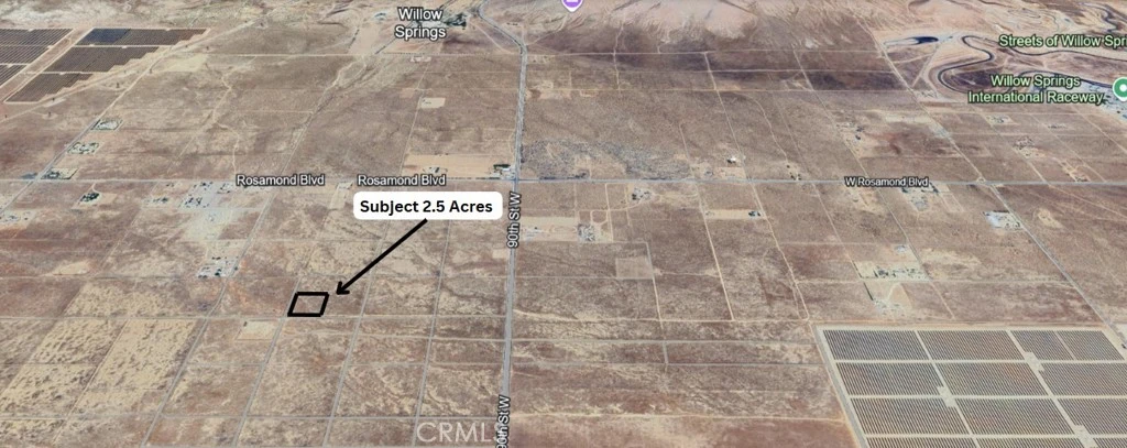 Explore the possibilities with this 2.5-acre parcel, ideally flat and usable for a range of projects. Perfectly suited for building a private ranch, this property is conveniently located just off Rosamond Blvd. It offers expansive panoramic views of the valley and mountains, enhancing its serene rural appeal. A great investment opportunity, enjoy proximity to Willow Springs Racetrack and easy access to the nearby towns of Rosamond, Lancaster, and Tehachapi, CA.