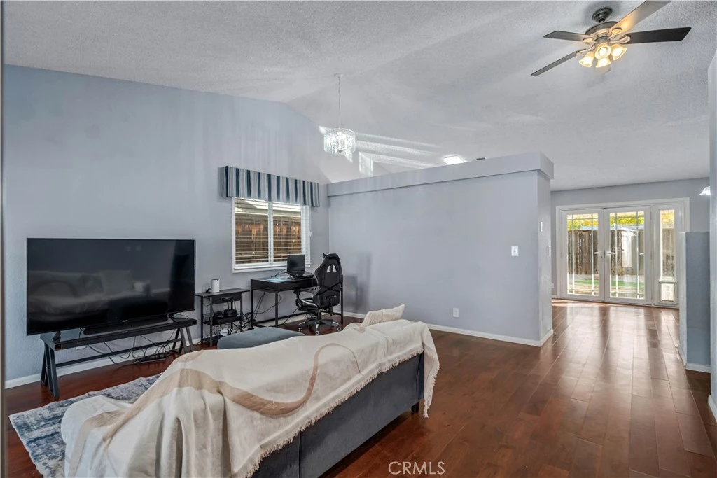 Welcome to the light-filled formal living and dining room, featuring vaulted ceilings, laminate wood flooring, and an attached 2-car garage with direct access. The open layout seamlessly transitions into a second living area, currently used as a dining room, which flows effortlessly into the upgraded kitchen. The kitchen boasts designer two-tone cabinetry, stainless steel appliances, a French door leading to the backyard, and a cozy fireplace with a marble-look surround. This beautifully updated home comes with an impressive list of upgrades, including newer windows, a newer heating and AC system with updated ducting, a newer roof, updated flooring, designer interior paint, and a water filtration/softener system. The spacious primary bedroom features a wall-length closet and an additional closet in the en-suite bath. The refreshed primary bathroom includes a dual-sink vanity, a large walk-in shower, updated fixtures, and fresh paint. Both secondary bedrooms are generously sized with ample closet space and share a guest bathroom with a vanity featuring a composite countertop and a designer backsplash. Step outside to your private backyard oasis, perfect for relaxing or entertaining. It features a covered patio, low-maintenance landscaping, and custom concrete-curbed planters, all creating a peaceful setting to take in beautiful sunrises and sunsets. Won't last long call today!!