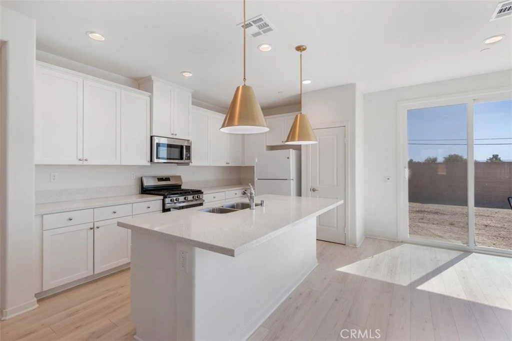 Experience modern desert living at its finest in this brand-new 2024 built home in Rosamond. This beautifully designed 4-bedroom, 2-bath residence blends comfort, energy efficiency, and style in every detail. Step inside to an open-concept floor plan filled with natural light and a spacious kitchen featuring sleek white quartz countertops, stainless steel finishes, and a perfect layout for entertaining. The inviting living area flows seamlessly into the dining space, creating an ideal setting for family gatherings. With paid solar, you'll enjoy lower utility costs and a greener lifestyle from day one. The large backyard is a blank canvas ready for your dream outdoor living space, garden, or future pool. Conveniently located near the 14 Freeway and Edwards Air Force Base, this home offers an easy commute while keeping you close to schools, parks, and all that Rosamond has to offer.