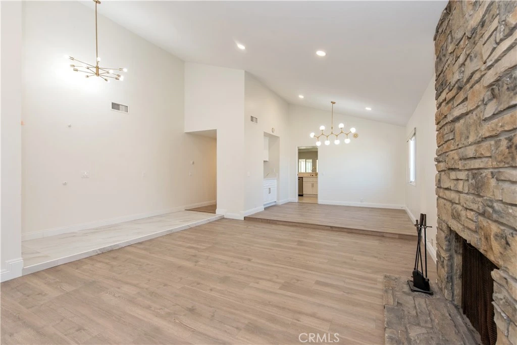 Welcome to 2503 Donosa Drive, a beautifully renovated single-story home in the heart of Rowland Heights. This move-in ready residence blends sophisticated upgrades with warm, inviting details — creating the perfect space for modern living. As you step inside, you're greeted by vaulted ceilings and an abundance of natural light that fills the open-concept living and dining areas. The newly installed wide-plank luxury flooring adds warmth and continuity throughout, while recessed lighting and designer chandeliers elevate the ambiance. The living room features a striking stone fireplace, offering a cozy focal point for gatherings or quiet evenings at home. Just off the living and dining areas, a convenient built-in wet bar with quartz counters and sleek brass fixtures adds a stylish touch for entertaining. Down the hallway, you'll find beautifully remodeled bathrooms with contemporary finishes and thoughtful design, along with spacious bedrooms that offer both comfort and privacy. Located on a quiet residential street just minutes from shopping, dining, schools, and parks, this home offers the perfect combination of location, style, and convenience.