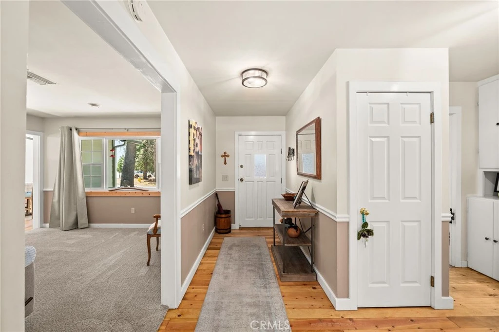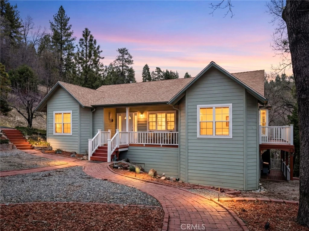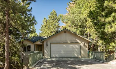 Located in the Smiley Park Country Club, southeast of Running Springs, this turnkey home is tucked away on a quiet cul-de-sac and set on 1.24 acres surrounded by trees and local wildlife. A charming brick walkway leads to the covered front porch and welcoming entry. Knotty pine floors paired with scenic views from nearly every room create a warm, inviting atmosphere and draw you through the home’s thoughtfully designed interior. The main level features a living room with a wood-burning fireplace complete with insert and blower, a spacious family room with vaulted knotty pine ceilings, a country kitchen with an open breakfast nook, and a dining room that can easily serve as a den or office. Two bedrooms, one bathroom, and a large walk-in laundry and utility room with washer and dryer hookups complete the main floor. The expansive wraparound composite deck, enhanced with Trex railing at the deck and entrance, is ideal for entertaining or simply relaxing while enjoying birdsong among the surrounding oak trees. The lower level offers a private primary suite with a sitting area, a bathroom featuring an extra-large walk-in shower, and indoor Jacuzzi, along with a second laundry area. An additional bedroom on this level can also function as an office or craft room and offers beautiful views. You’ll also find a workshop with a utility sink, abundant storage, and access to a second, smaller deck. Recent upgrades include a newer roof installed in 2021, newer double-hung windows, updated carpeting, laminate flooring in the downstairs bathroom, Hardiboard siding, exterior paint, a new dishwasher, and updated light fixtures. For larger gatherings, the community clubhouse offers an outdoor pool, BBQ area, recreation room, pool table, and kitchen, along with monthly activities such as bingo, barbecues, potlucks, and holiday events. The HOA also provides road maintenance, and snow removal. The home is just minutes, (16 to be exact), from both SkyPark at Santa’s Village and Snow Valley Ski Resort. Come check out this amazing mountain retreat home today!