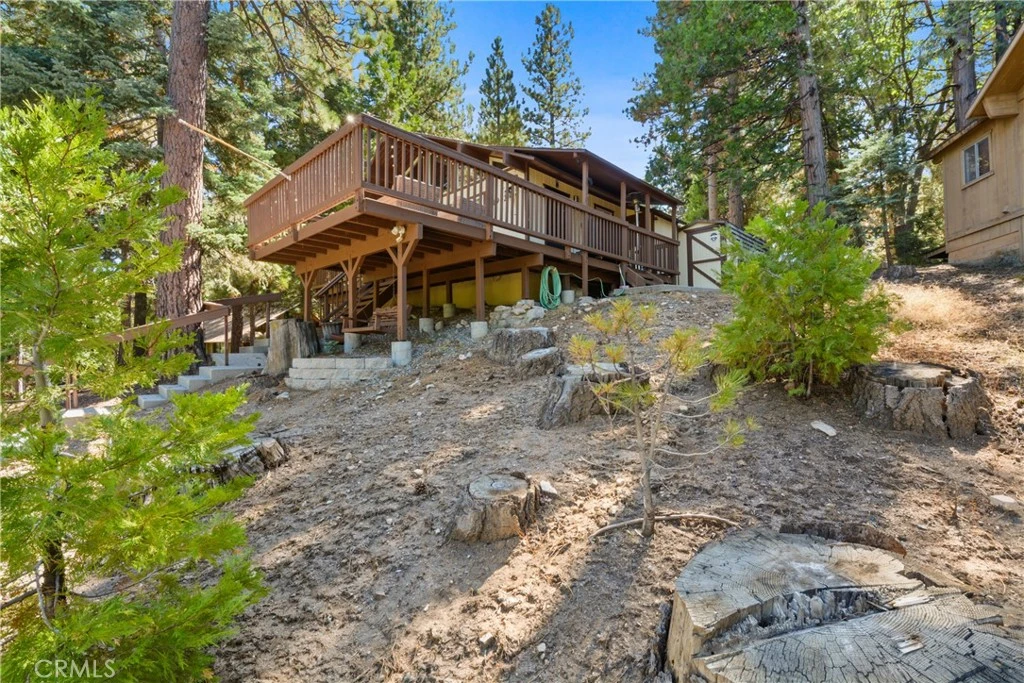 This well-kept 2-bedroom, 1-bath cabin offers a perfect escape into the San Bernardino mountains. Built in 1978 and full of character, the home features vaulted high ceilings, a unique indoor fire pit, and a spacious open living area that creates a warm, inviting atmosphere year-round. Situated on a generous 7,000 sq ft lot, the home includes an outdoor deck ideal for relaxing or entertaining in a peaceful wooded setting. Whether you’re looking for a weekend getaway, vacation rental, or full-time mountain living, this property fits the bill. Located just 30 minutes from the city, you'll enjoy the rare combination of quiet mountain living with convenient access to urban amenities. Close to hiking trails, ski resorts, and Lake Arrowhead, this cabin is your gateway to year-round recreation.