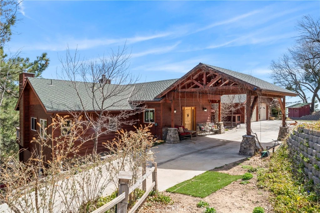 Elegant Mountain Haven. Discover an exquisite custom home nestled on a sprawling 1.3-acre lot in the picturesque town of Running Springs. Perched atop a secluded hillside and surrounded by pristine forest, this property boasts panoramic valley and mountain vistas, framed by expansive windows that flood the interior with natural light. Step inside from the large portico entryway to find a beautiful interior featuring rich hickory flooring and vaulted ceilings. The kitchen showcases granite countertops, pecan cabinetry, a generous pantry, new top of the line appliances and a welcoming breakfast bar. The primary suite is a true retreat, complete with a fireplace and an en-suite bathroom featuring a jacuzzi tub and a large shower with custom tile. The lower level offers versatile living spaces, including an additional family room with a fireplace, two bedrooms (one currently used as a craft space), a private office, and a dedicated hobby room. Two of the finished bonus rooms have a separate entrance and are not included in the listed square footage. Outdoor living is a dream with a series of low-maintenance Trex decks, ideal for al fresco dining, birdwatching, or stargazing around the inviting fire pit. The landscaped grounds boast fruit trees, including apple and apricot, flowering vines, and a serene hillside waterfall. Nature lovers will appreciate the regular visits from deer, gray squirrels, foxes, raccoons, and even the occasional black bear. Colorful mountain birds flock to the feeders daily. The driveway is lined with Quaking Aspens brought down from the High Sierras, along with other trees that turn a beautiful red in the fall, offering a true four-season experience. For the eco-conscious homeowner, there's a tankless water heater and an electric car charger in the oversized garage, which is also pre-wired for a generator. A generous RV parking area with a dump station adds convenience for outdoor enthusiasts. Additional amenities include a snowblower, yard maintenance tools, and a separate woodshed on the property. Perfectly situated between Lake Arrowhead and Big Bear, this home offers easy access to the best the San Bernardino mountains have to offer. Just 13 miles from the 210 freeway, it's ideal for commuters or those seeking a weekend getaway. Whether you're looking for a full-time family residence, a lucrative vacation rental, or a serene mountain retreat, this gem is the perfect choice. Your mountain sanctuary awaits!
